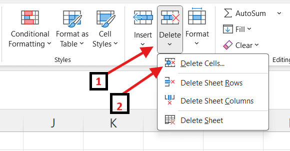 - To delete the blank cells go to the Home tab on the ribbon. In the Cells group, click on Delete, and then choose Delete Cells.